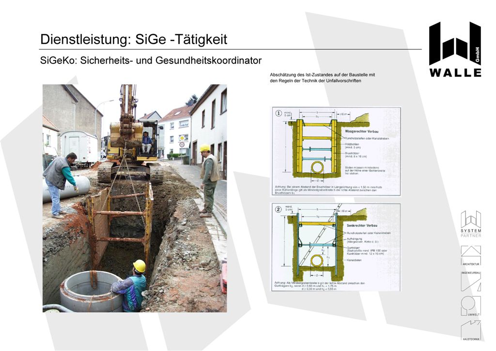 und während der Bauausführung die Einhaltung der Arbeitsschutzvorschriften überwacht und die Tätigkeiten der einzelnen